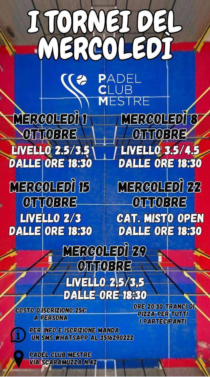 E' un format Padel Club Mestre: Tornei del Mercoledì. Ad Ottobre si ocntinua, il divertimento non ha stagioni.